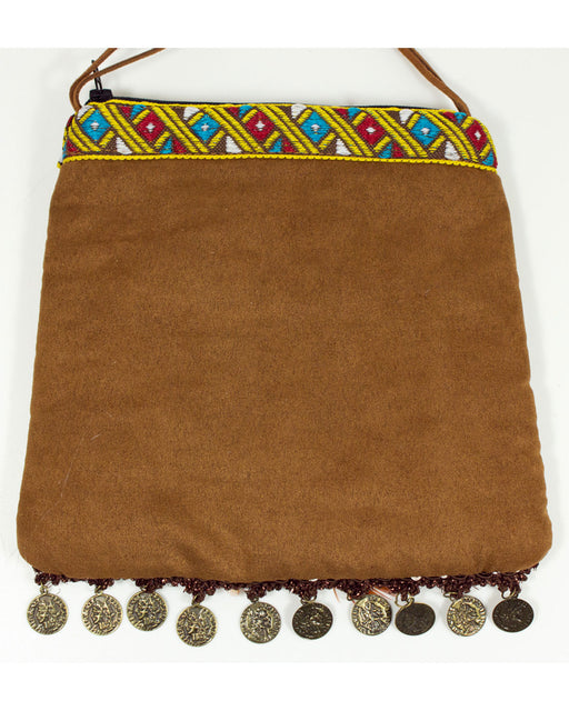 Vollständige Details anzeigenIndianer Handtasche mit Federn und Münzen - Braun