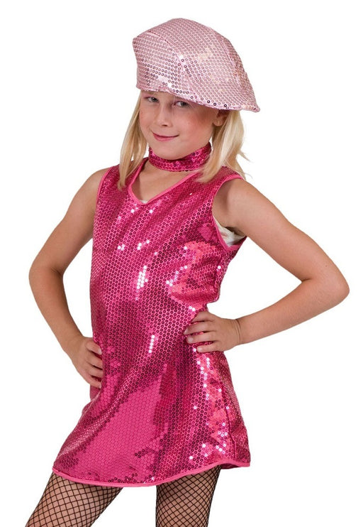 Vollständige Details anzeigenDisco Pailletten Kleid für Damen - Pink | Glitzer Show Party 80er Jahre Kostüm