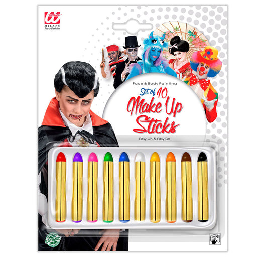 • Lieferumfang: 10 Schminkstifte - insgesamt 24ml • 10 Stifte in den Farben Rot, Schwarz, Orange, Gelb, Weiß, Blau, Silber, Pink, Lila und Bordeaux...