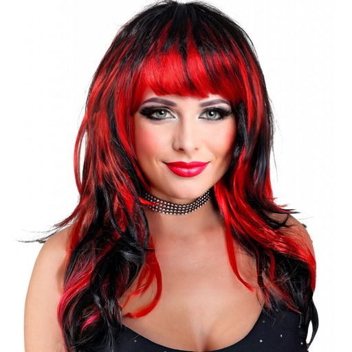 Vollständige Details anzeigenDamen Perücke "Vampirin" | Schwarz/Rot