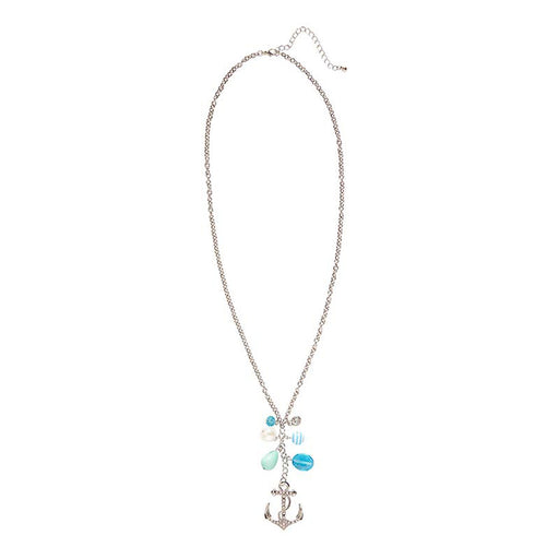 Hübsche Halskette mit einem strassbesetzten Anker und blauen Perlen. Inhalt Halskette Farbe silber, blau Größe Einhe...