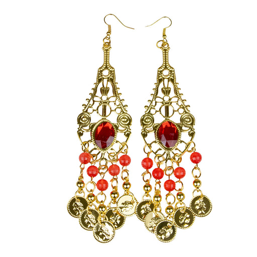Diese prachtvollen Ohrringe in Gold mit roten Perlen und einem funkelnden Edelstein sind ein echter Hingucker und verleihen jedem Outfit eine glanz...