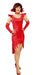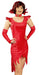 Das rote, aus Pannesamt gefertigte Minikleid passt sich perfekt jeder Figur an. Durch die verkürzten Fransen am vorderen Teil des Samtkleides setzt jede Dame verführerisch ihre Beine in Szene. Die mitgelieferten Handschuhe und der auffällige Kragen mit Schmuckstein runden dieses Teufelskostüm perfekt ab.