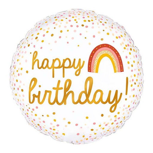 ABC18 Folienballon "Happy Birthday" Weiß-Gold | 45cm
