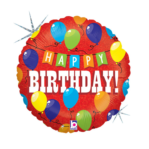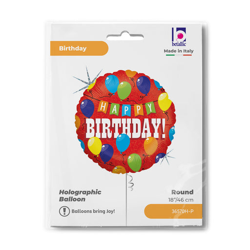 Vollständige Details anzeigenABC18 Folienballon "Happy Birthday Party" Holo/Glitter | Ø 46 cm