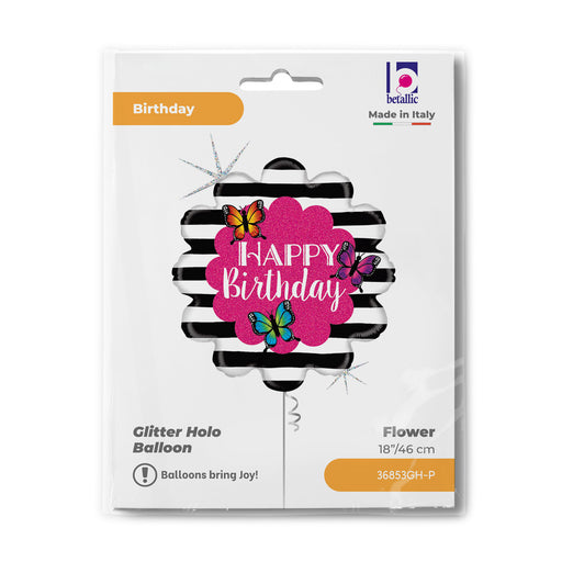 Vollständige Details anzeigenABC18 Folienballon "Happy Birthday Schmetterlinge" | Ø 46 cm