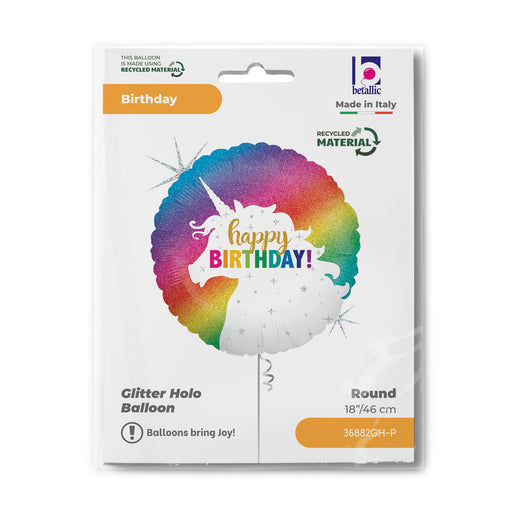 Vollständige Details anzeigenABC18 Folienballon "Happy Birthday Einhorn" Glitter | Ø 46 cm