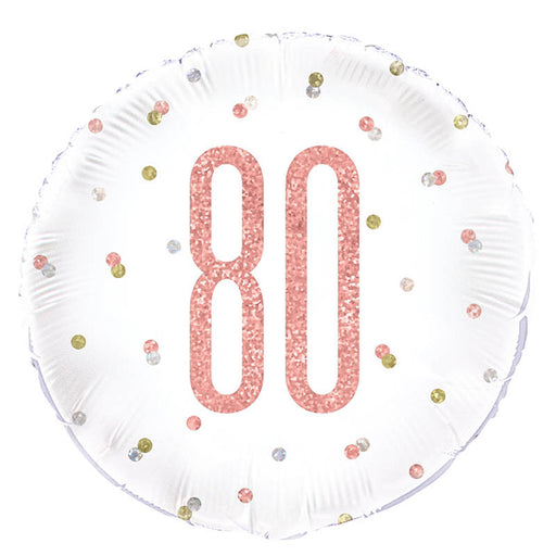 Vollständige Details anzeigenABC18 Folienballon "Happy Birthday #80" Glitz | Ø 45 cm Rosegold