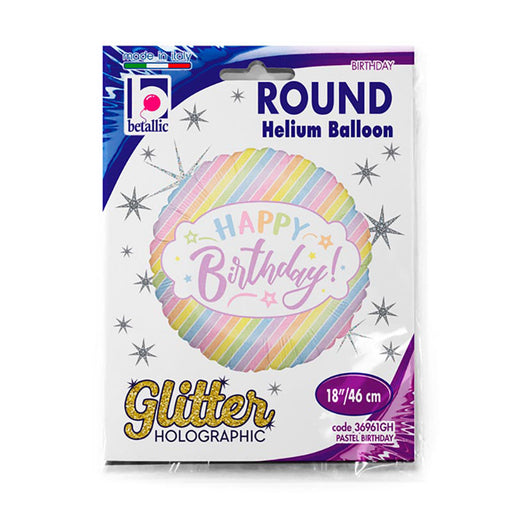 Vollständige Details anzeigenABC18 Folienballon "Happy Birthday Pastell Glitter" | Ø 46 cm