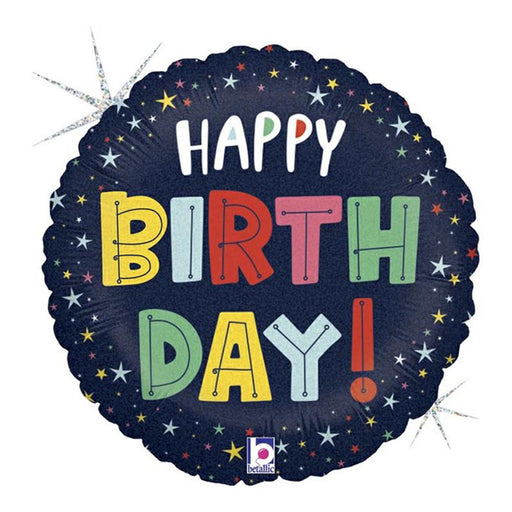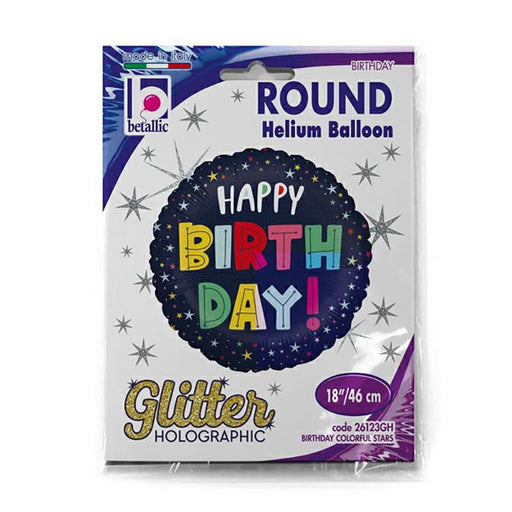 Vollständige Details anzeigenABC18 Folienballon "Happy BIrthday Stars" Holo | Ø 46 cm