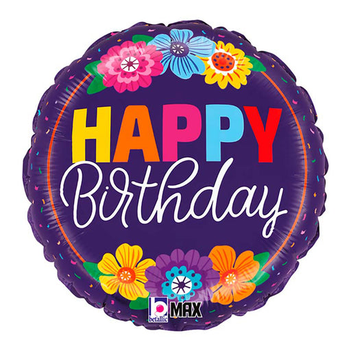 Vollständige Details anzeigenABC18 Folienballon "Happy Birthday Blumen" | Ø 46 cm