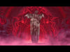 Der Drache trägt zerfetzte, dunkle Stofffetzen an seinem Leib, die im Wind leicht wehen und ihm eine verfluchte, unruhige Erscheinung verleihen. Diese Fetzen verstärken den Eindruck eines alten, bösartigen Wesens, das aus der Tiefe der Hölle emporgestiegen ist.