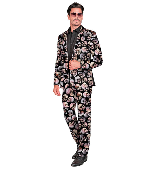 Vollständige Details anzeigenHalloween Designer Anzug "Totenkopf" 2-tlg. UV | Mehrfarbig - Herren Kostüm