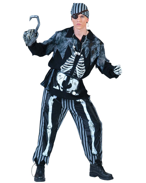 Vollständige Details anzeigenPiraten Kostüm für Herren mit Skelettdruck | Schwarz Weiß