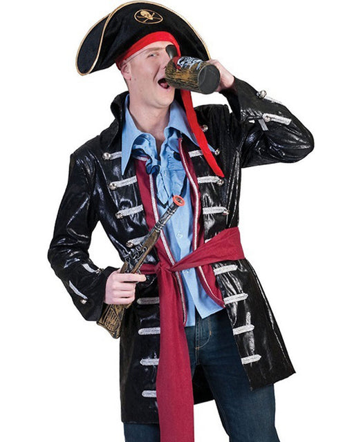 Auffälliges Piraten oder Seefahrer Kostüm für Herren im Karibik Stil. Geliefert werden hier die längere Jacke mit eingearbeiter Weste und Rüschenh...