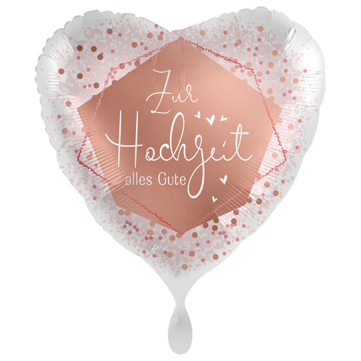 ABC18 Herz Folienballon "Alles Gute zur Hochzeit" mit Punkten | Ø 43 cm Weiß/Gold