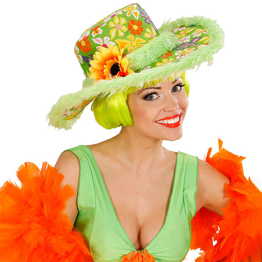 Hut Ibiza mit Plüschrand + Sonnenblume Grün