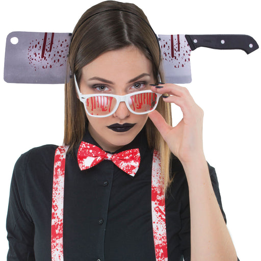 Vollständige Details anzeigenHalloween Haarreif mit blutigem Hackebeil