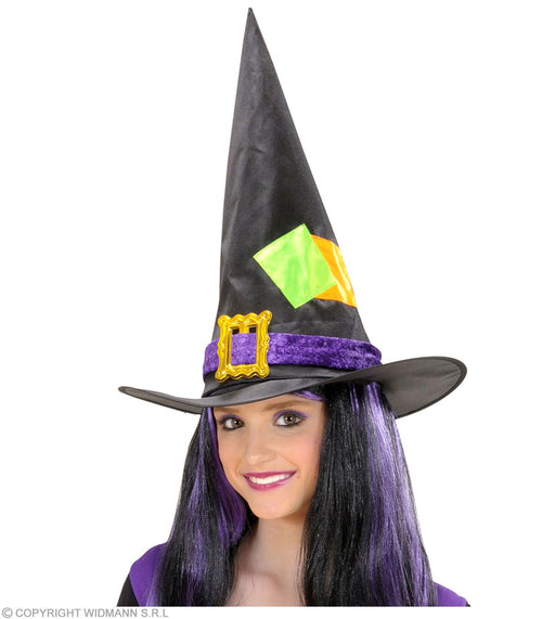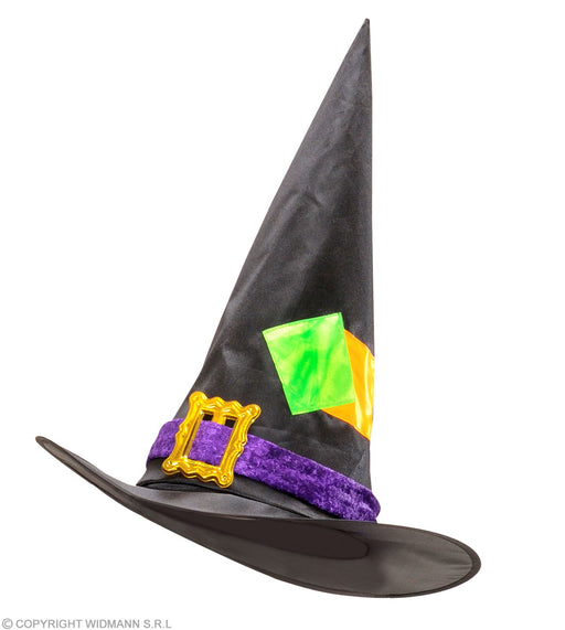 Vollständige Details anzeigenKinder Hexenhut mit Flicken und Schnalle | Schwarz Bunt