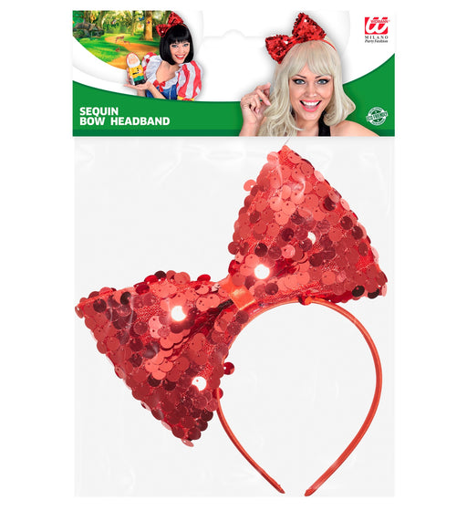 Schöner Haarreif zu Ihrem Party oder Karnevals Outfit! Der Haarreif ist mit einer großen Paillettenschleife besetzt und mit einem großen roten Schm...