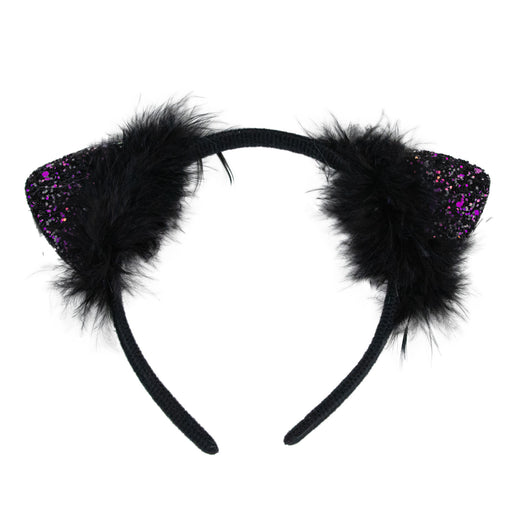 Vollständige Details anzeigenKatzenohren Haarreif mit Federn und Glitter | Schwarz