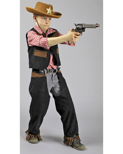 Tolles Western Kostüm für Kinder, bestehend aus Cowboy-Chaps, Weste und kariertem Hemd. Hose und Hemd sind aus einem weicheren Material hergestell...
