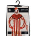 Der Einteiler kombiniert klassische Clown-Elemente mit einem düsteren Twist: Rote und weiße Längsstreifen erzeugen eine auffällige Optik, während Blutspritzer und ein morbides Design für den nötigen Schockeffekt sorgen. Der weit geschnittene Overall ist bequem zu tragen und lässt viel Bewegungsfreiheit – ideal für eine lange Partynacht oder den Halloween-Umzug.