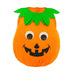 Besonders liebevoll gestaltet ist das Kürbisgesicht auf der Vorderseite, das dem Kostüm einen witzigen und freundlichen Charakter verleiht. Abgerundet wird das Outfit durch grüne Blätter-Details am Halsausschnitt, die wie ein echtes Kürbisblatt wirken und das Gesamtbild perfekt machen.
