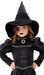 Das Mädchen-Kostüm ist in der eleganten Farbgebung Schwarz und Silber gehalten, silberne Borten und eine silberne Brosche mit schwarzem Schmuckstein runden die Optik ab. Das lange Kostümkleid hat am Rocksaum Überstoff aus Tüll und die Puffärmel machen das Kinderhexenkostüm zu einem ganz besonderen Hingucker. Abgerundet wird das exklusive Kostüm durch den zum Kleid passenden spitzen Hexenhut, mit einer extra breiten Krempe.