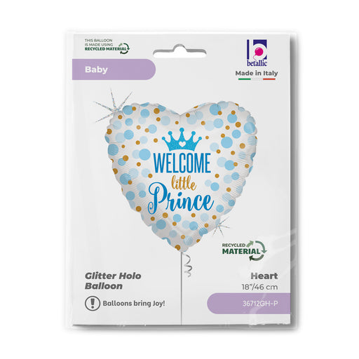 Vollständige Details anzeigenABC18 Herz Folienballon "Welcome little Prince" Holo | Ø 46 cm