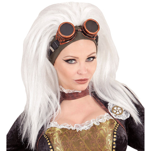 Vollständige Details anzeigenPerücke "Steampunk" für Erwachsene | Weiß mit Brille
