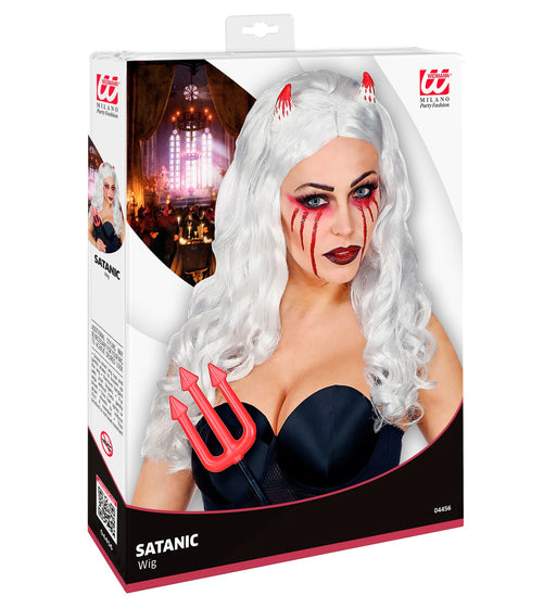 Vollständige Details anzeigenPerücke "Teufelin" mit Teufelshörnern | Weiß