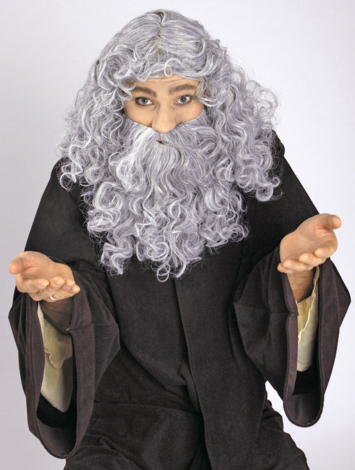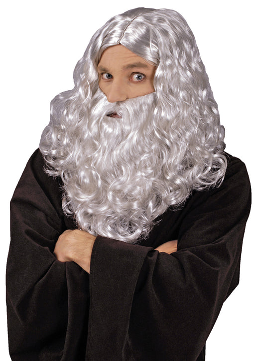 Dieses tolle Set für Herren bestehend aus einer silbergrauen, gescheitelten Langhaar Perücke und einem fülligen langen Bart eignet sich ideal für K...