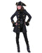 Mit diesem hochwertigen Karnevalskostüm für Frauen werden Sie zu einer richtigen Seeräuberin! Die Verkleidung besteht aus einem schwarzen Mantel mit goldenen Knöpfen und Verzierungen.