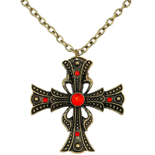 Vollständige Details anzeigenHalskette mit Strass Kreuz "Vampire" - Gold Rot