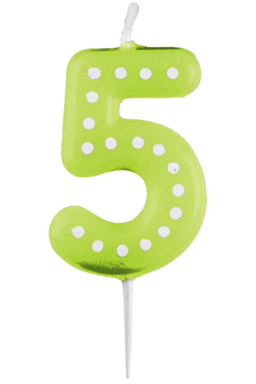 Vollständige Details anzeigenZahlenkerze mit Punkten 6,5cm | Grün # 5