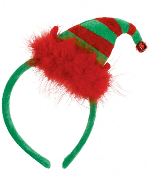 Haarreif "Weihnachtsmütze Elf" mit Glöckchen | Rot Grün