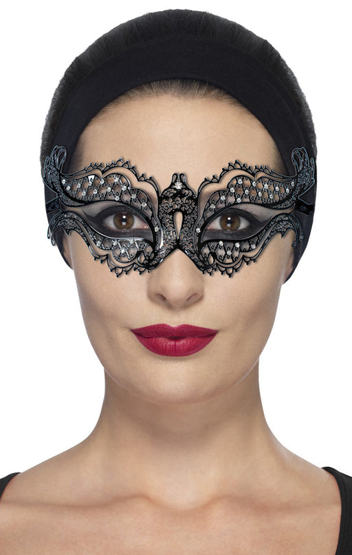 Vollständige Details anzeigenVenezianische Augenmaske Mystique - Metall Schwarz mit Strasselementen