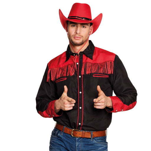 Kostüm Western Hemd Schwarz/Rot Gr.M