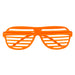 Dank der UV-aktiven Neonfarben beginnt die Brille unter Schwarzlicht intensiv zu leuchten und wird auf dunklen Tanzflächen sofort zum Blickfang. Das offene Lamellen-Design sorgt für einen auffälligen Look, ohne die Sicht vollständig zu verdecken, und macht die Brille angenehm tragbar – auch über mehrere Stunden hinweg.