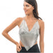 Dieses auffällige silberne Metallic-Top ist ein absolutes Must-have für alle, die auf Partys, Festivals oder besonderen Events ein modisches Statement setzen möchten. Mit seinem funkelnden, metallisch glänzenden Stoff fängt es das Licht bei jeder Bewegung ein und sorgt dafür, dass du garantiert alle Blicke auf dich ziehst.
