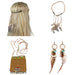 Mit dem Indianerin Schmuck Set für Damen verleihst du deinem Kostüm im Handumdrehen den letzten Schliff. Das 3-teilige Set besteht aus einer dekorativen Handtasche, einem Stirnband mit Federn sowie passenden Ohrringen mit Federdetails und sorgt für einen harmonischen, stimmigen Look.