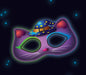 Die Gesichtsmaske ist Katze gestaltet und die Knicklichter setzen leuchtende Akzente. Die Maske ist ca. 19 x 10 cm groß und wird wie eine Brille mit Bügeln aufgesetzt.