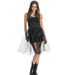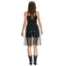 Suchst du nach einem echten Hingucker für dein nächstes Festival oder eine unvergessliche Sommernacht? Mit diesem knielangen Festival-Rock aus glitzerndem Netzstoff in Schwarz setzt du garantiert ein Statement. Der Rock kombiniert aufregenden Glam...