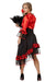 Das zweiteilige Kostüm besteht aus einem schwungvollen Kleid und einem passenden Jackett in den klassischen Farben Rot und Schwarz. Das Kleid begeistert mit seinem asymmetrischen Schnitt, den verspielten Volants sowie kontrastreichen Punkten und Spitzenelementen, die bei jeder Bewegung elegant mitschwingen. Die figurbetonte Passform unterstreicht die Silhouette und sorgt für einen femininen, selbstbewussten Look. Das kurze Jackett ergänzt das Kleid perfekt und verleiht dem Kostüm eine stilvolle, authentische Note im spanischen Stil.